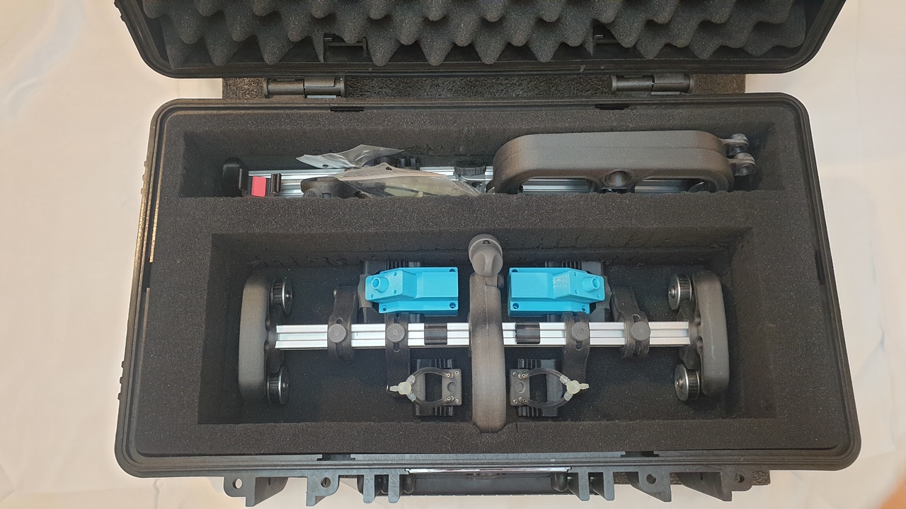 Fits any 40mm wide PA search units, and 32mm wide ToFD search units (But can be customized). Works on 2"NPS to flat. Comes with Magnetic wheeled handles, Multiple bar lengths and couplant fittings. Configuration is easily changed to single probe single side or single PA + ToFD as required (See other images). Odi style encoder required - but can be customized to fit any existing encoder.